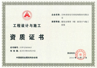 工程設(shè)計(jì)與施工資質(zhì)證書