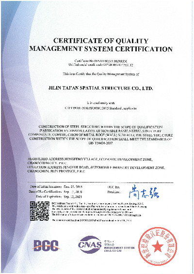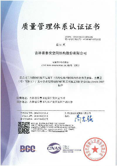 質(zhì)量管理體系認(rèn)證證書(英文版)