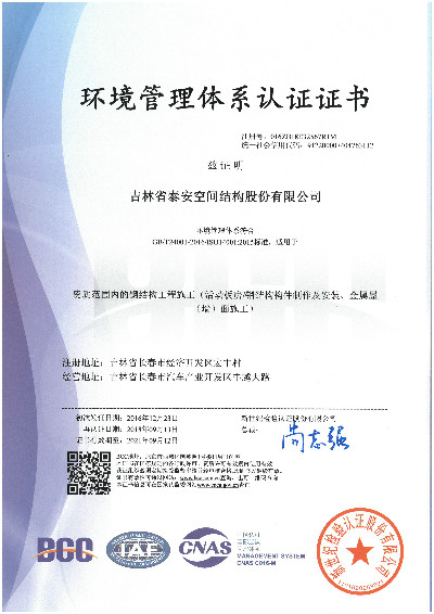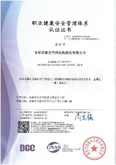 職業(yè)健康安全管理體系認(rèn)證證書(英文版)